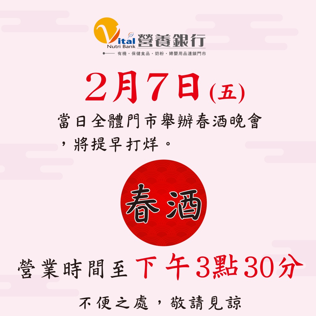 【重要通知】門市春酒營業時間公告